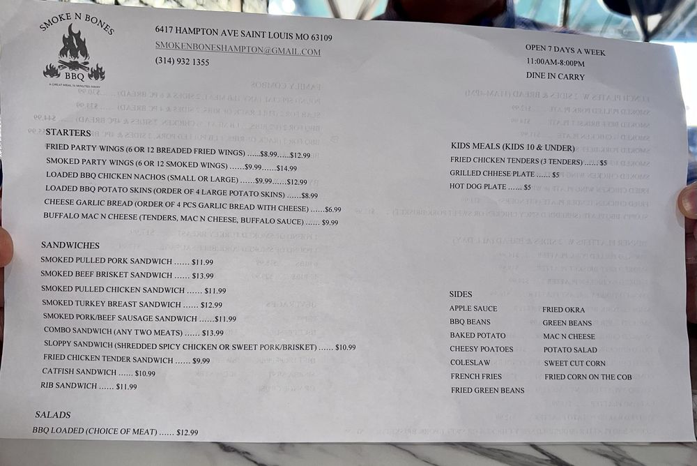 Smoke N Bones BBQ is a barbeque joint located in Saint Louis, MO, offering a variety of mouthwatering dishes. From loaded BBQ chicken nachos to smoked pulled pork sandwiches, their menu is filled with flavorful options. Customers rave about the generous portions and delicious meats, with some favorites being the smoked wings and brisket. The casual atmosphere with outdoor seating, happy hour specials, and friendly service make it a great spot for enjoying a meal with friends or family. Despite some minor menu discrepancies mentioned by customers, the overall consensus is positive, with many claiming it as their new go-to BBQ spot. So, if you're in the mood for some flavorful and satisfying BBQ, Smoke N Bones BBQ is definitely worth a visit.